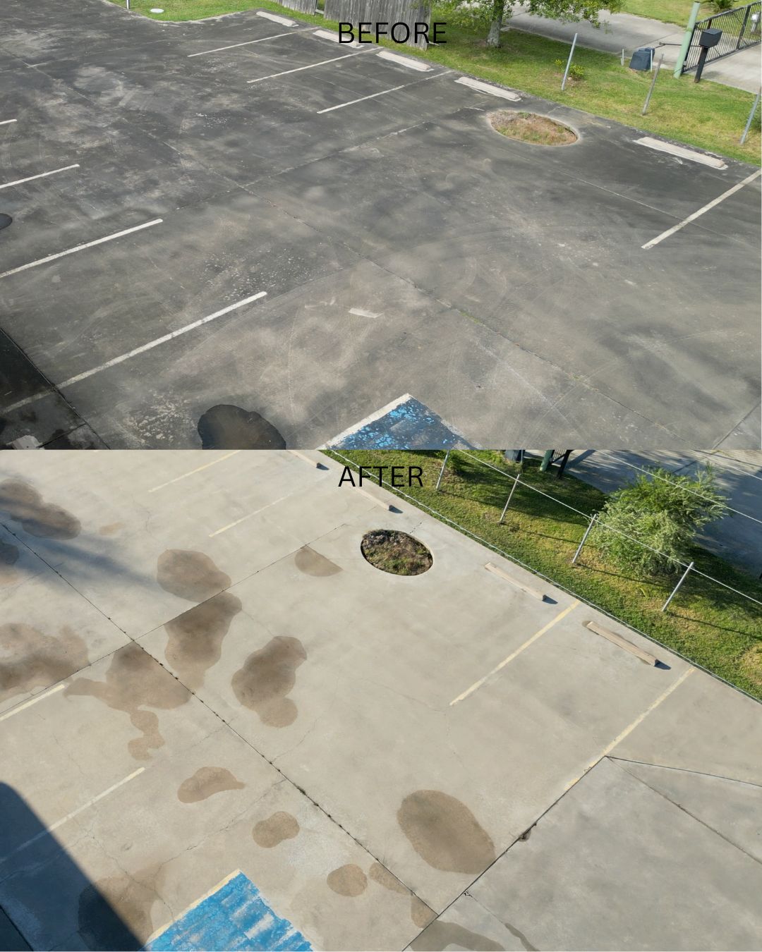 Clean parking lots, drive thru's, driveways and sidewalks. This is a surface treatment that uses high-pressure water and specialized cleaning solutions to remove dirt, grime, algae, mold, and other stains from concrete and paved surfaces, enhancing curb appeal and preventing hazards like slips and falls.